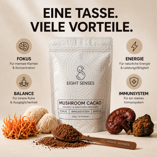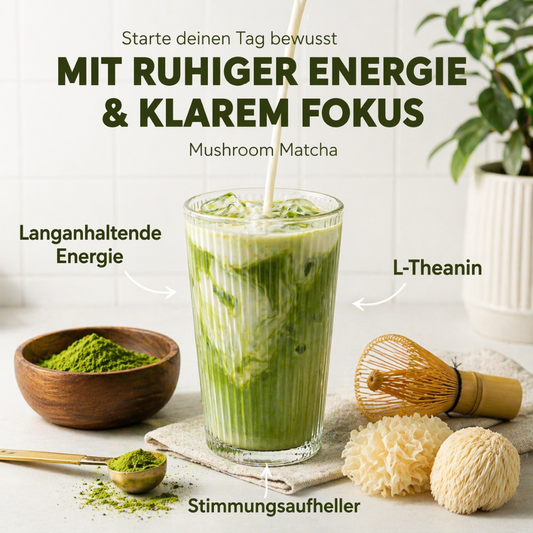 Pilze sind eine wahre Superkraft der Natur! Unsere kraftvolle Mischung aus drei Hauptpilzextrakten, ergänzt durch weitere wirksame pflanzliche Inhaltsstoffe, bietet starke adaptogene Effekte für Körper und Geist. Diese natürlichen Zutaten werden seit Jahrtausenden weltweit verwendet, und ihre Wirkung ist wissenschaftlich gut belegt. Die spezielle Kombination und Dosierung in unserem 'Mushroom Cacao' entfaltet eine beeindruckende natürliche Kraft, die du unbedingt selbst erleben solltest!
