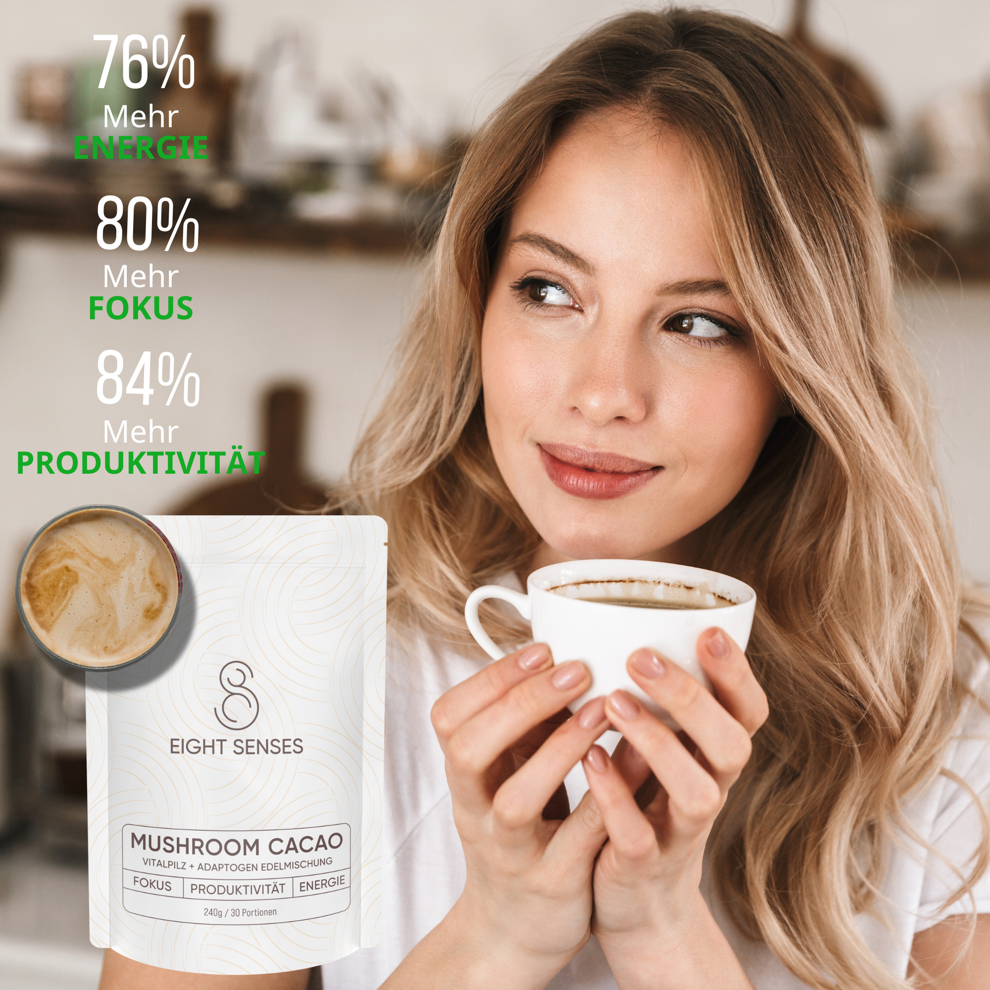 Der Thermobecher hält Ihren Mushroom Cacao den ganzen Tag über auf der optimalen Temperatur – heisse Getränke bleiben heiss, kalte Getränke erfrischend kühl. Der doppelwandige isolierte Edelstahl sorgt für erstklassige Isolierung und eine lange Lebensdauer. Dank des praktischen, abnehmbaren Schiebedeckels bleibt alles sicher und spritzfrei, auch wenn Sie in Bewegung sind.