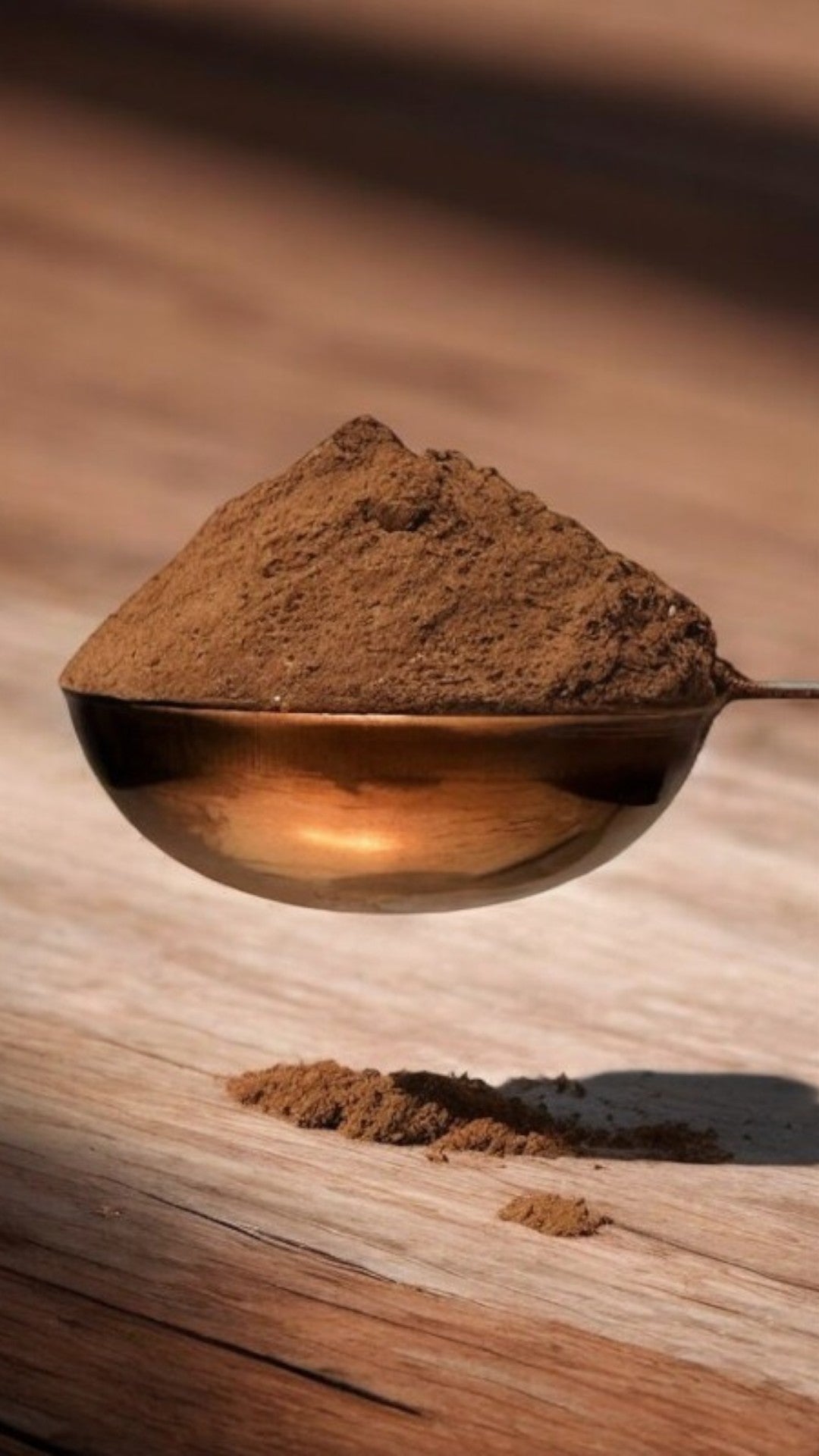 Schöpfe einen Messlöffel (8g) Mushroom Cacao in deine Tasse.