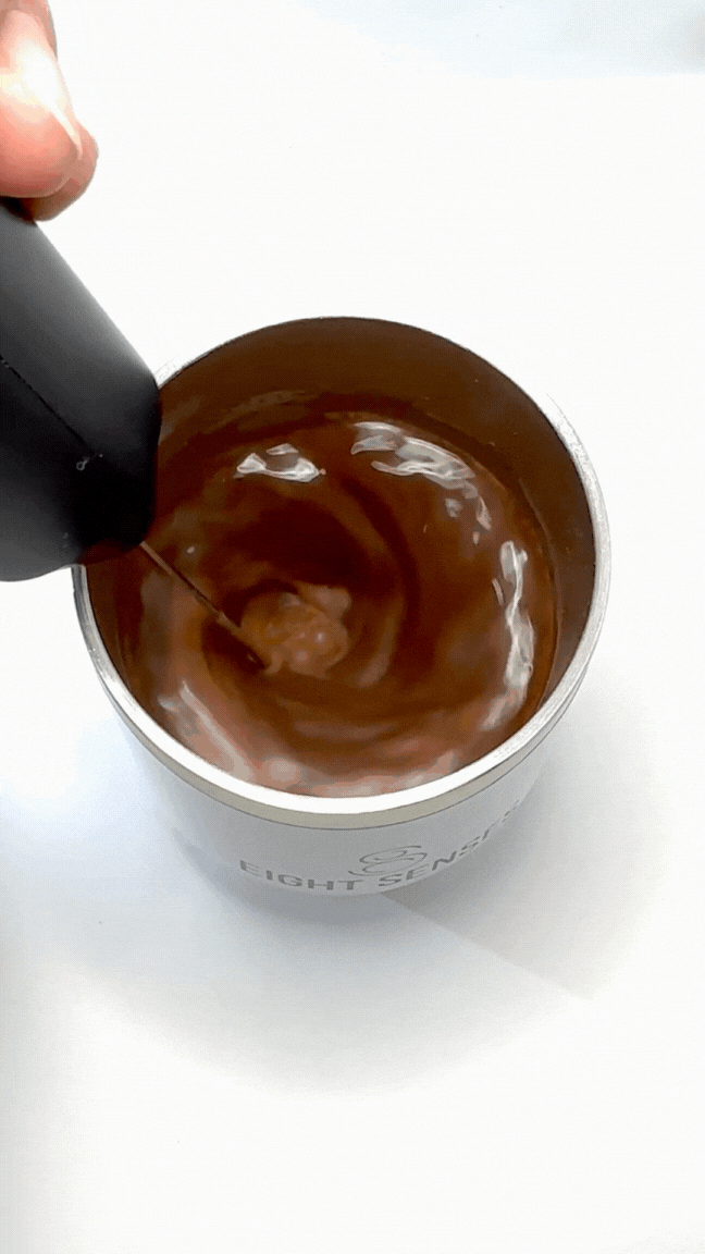 Verwende einen Aufschäumer, um alles perfekt zu vermischen.